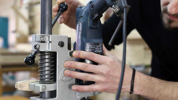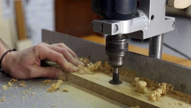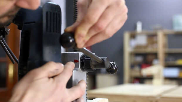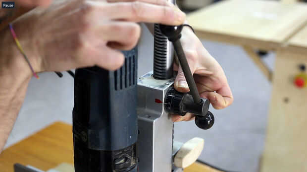 Foto1-primera fina que tengo que hacer es ajustar la altura relativa y la profundidad de taladro. Con el poco contacto con la pieza, reajustar la perilla a 0.