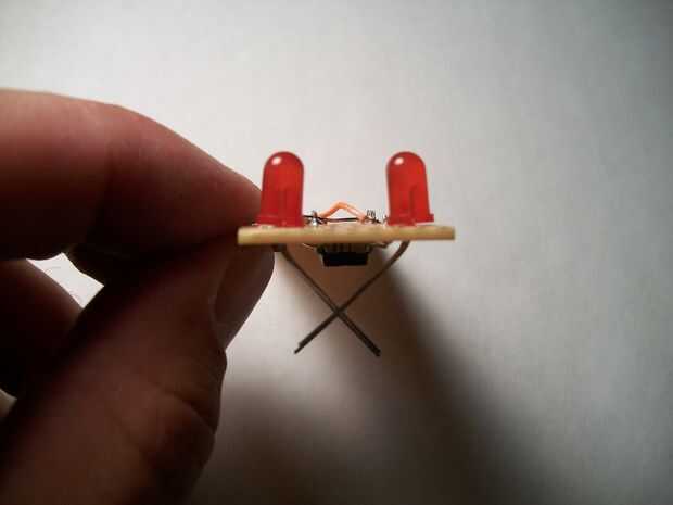 Encontré que era más fácil si pongo los plomos a través de la Junta donde quería y doblar las puntas al lado. Entonces quité uno de los leds para no tener que luchar contra dos al mismo tiempo.