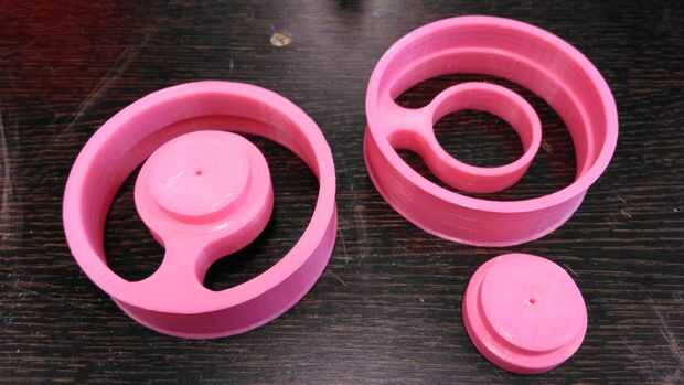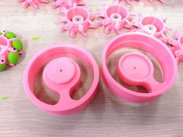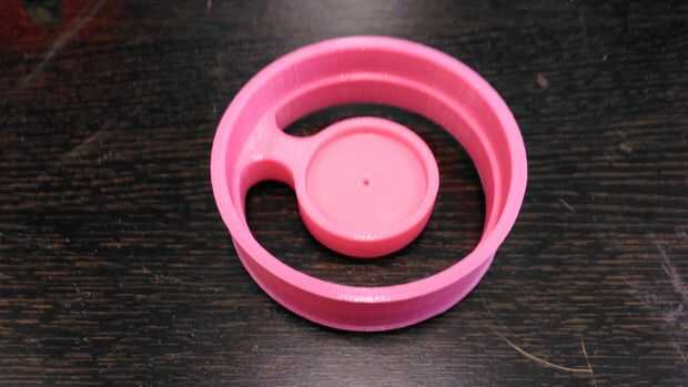 Limar el PLA de ambas partes e inserte la pieza de borde de centro dentro del centro de la llanta delantera. Asegúrese de que el borde del centro está perfectamente alineado con el borde, si no se balancea la rueda.