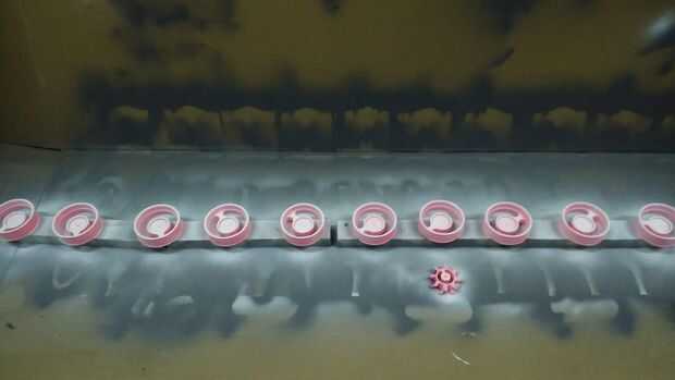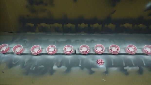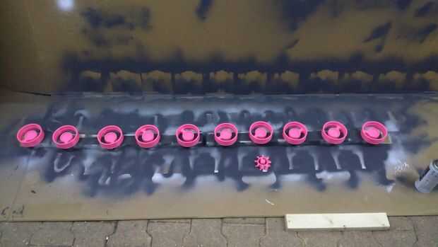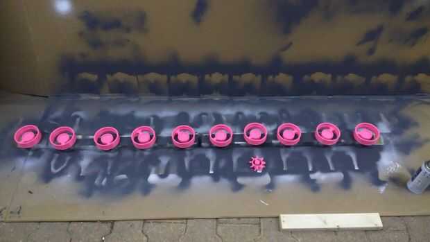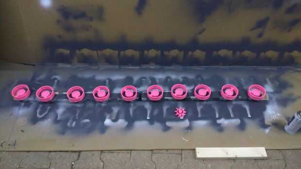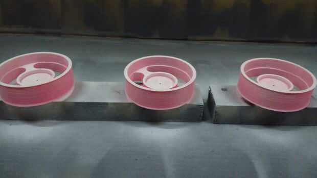 Rosa PLA fue utilizado para imprimir todas las piezas, si tuviéramos filamento gris habría utilizamos en su lugar. Así que para conseguir un chasis gris, tuvimos que pintar todas las piezas. Primero aplicamos una pintura de imprimación varias veces antes de aplicar la pintura gris final.