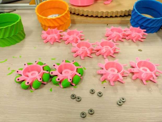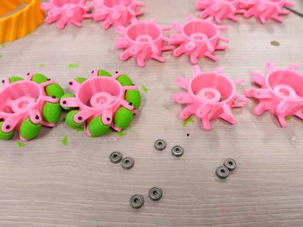Nota: usé grasa de litio para lubricar dentro los neumáticos pequeños para minimizar la fricción y también el tornillo M3x50 dentro del centro de la llanta también por la misma razón.