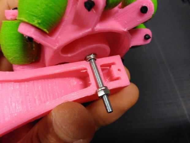Finalmente insertar el 623ZZ teniendo dentro un tornillo M3x50, que ponga una pequeña arandela, y Inserte el tornillo en el centro de la carcasa de la llanta trasera. Luego Trabe el tornillo con una tuerca y una arandela.