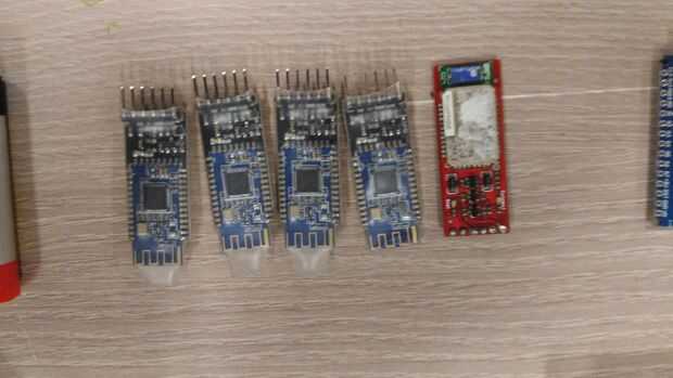 El módulo de Bluetooth a bordo utilizado es un módulo HM-10 LE Bluetooth 4.0. El Bluetooth es conectado al puerto serie de Arduino y se alimenta de 5V de Arduino.