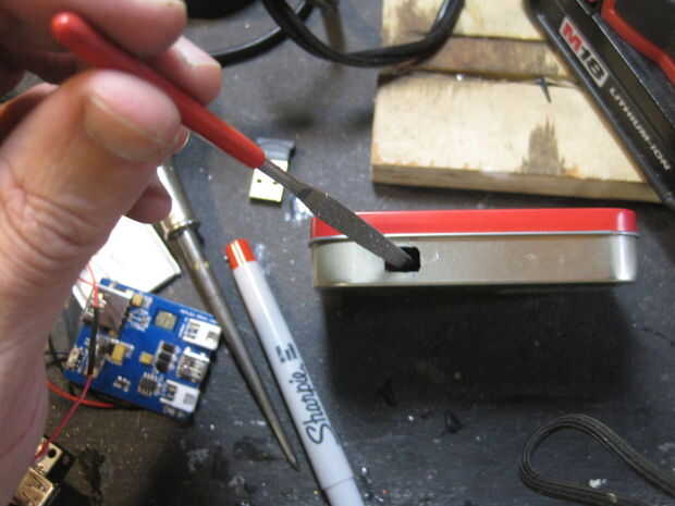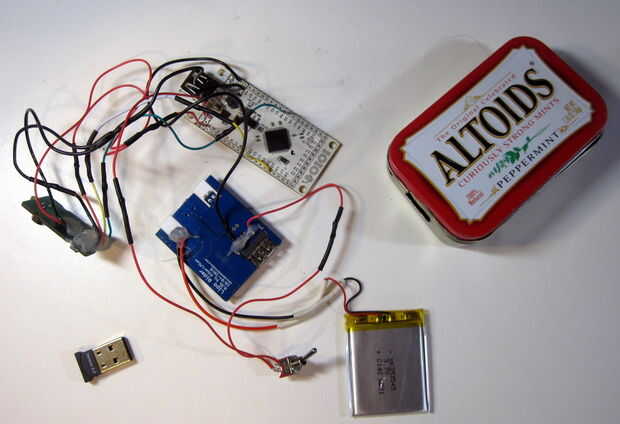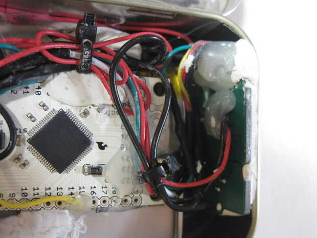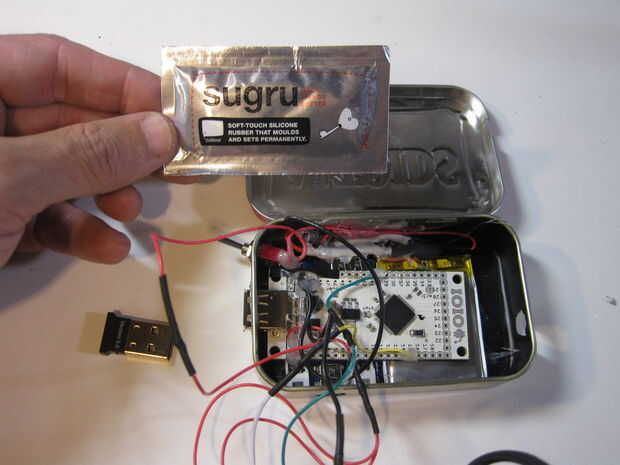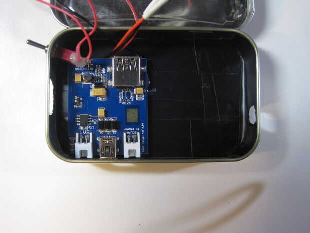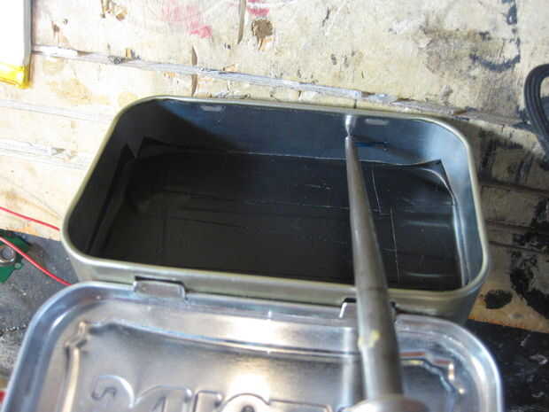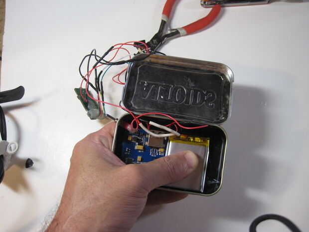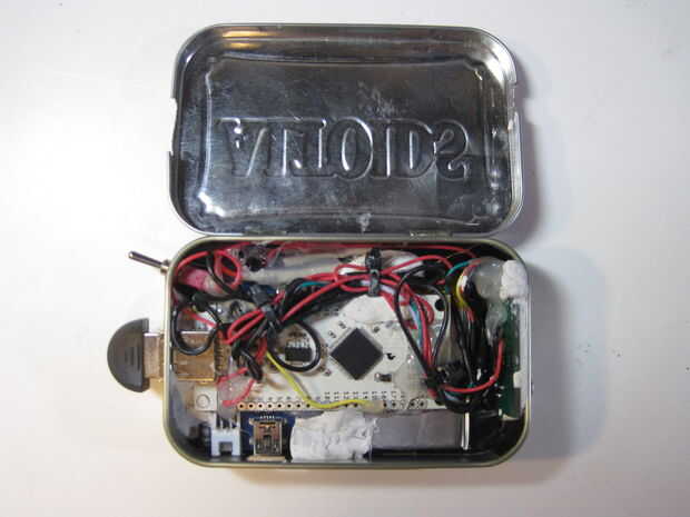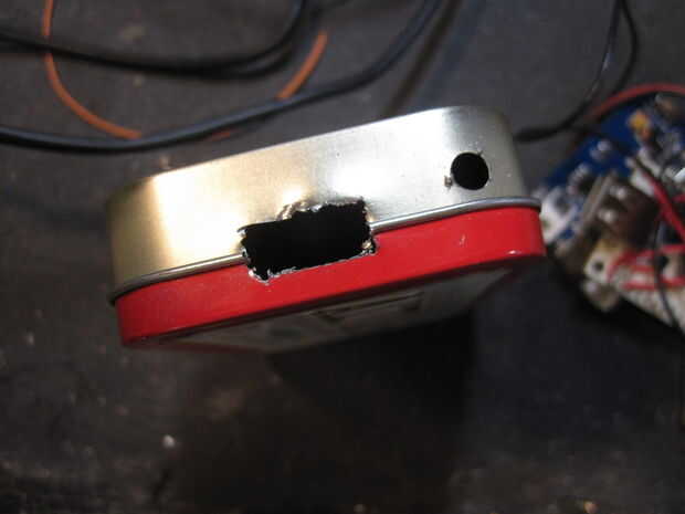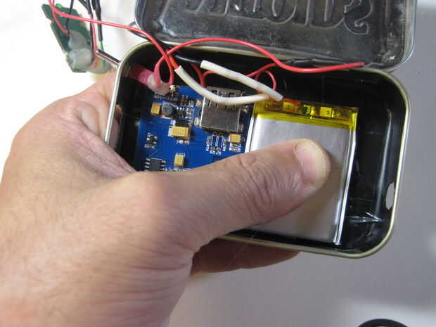 Alambre encima de todo por el esquema y asegúrese de dejar suficiente longitud de los cables que se pueden montar todos los componentes en la lata Altoids. Como cualquier proyecto, hacer una prueba con tu teléfono Android antes del montaje final para asegurar que todo está funcionando como debería. Las imágenes ilustran el conjunto de la colocación de los componentes.