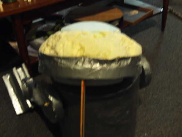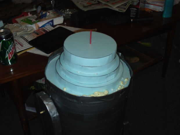 La cúpula fue creada con muchas capas de hojas de espuma y luego utiliza spray de espuma enlatada a incluso hacia fuera de la cúpula. lijar fue interesante, tratando de conseguir la forma redondeada fue lento y muy sucio. Nota para todos: no presentar o donde su cónyuge ver el lío de la arena. Grabación fue difícil conseguir liso, trabajo desde el centro hacia afuera.