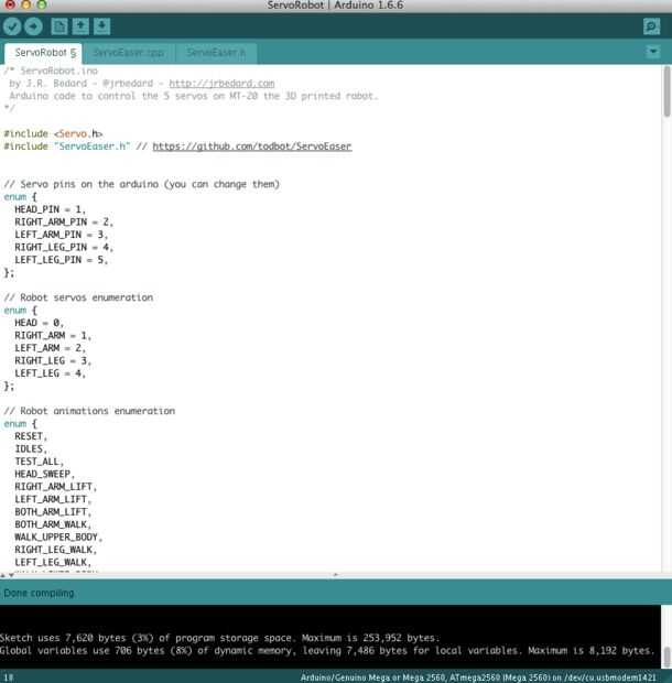 El código de Arduino está incluido en el Instabot Kit, se puede personalizar para controlar los LEDs, servos, etc..