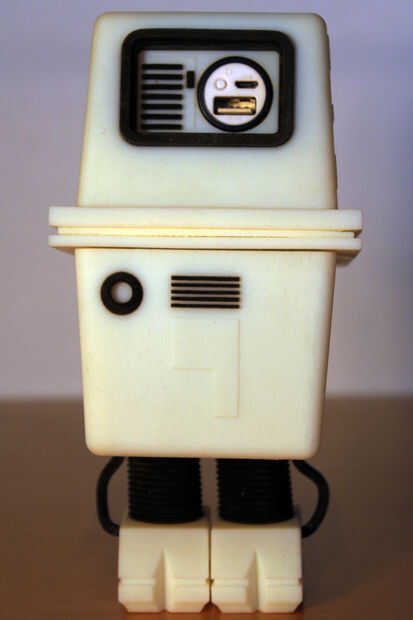 En primer lugar inserté el cargador portátil de Anker en el agujero cilíndrico. Yo no había previsto suficiente tolerancia, por lo que es un ajuste bastante exacto. Planeé esto modelando un pequeño agujero en la parte posterior, con la que puedo empujar el cargador hacia fuera con un destornillador de joyería o broca para taladro de 1/16".