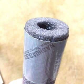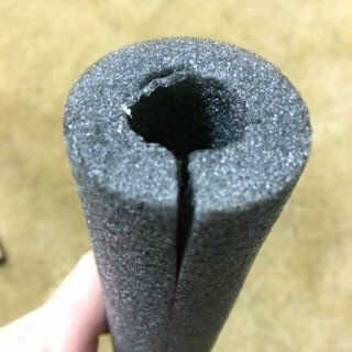 Espuma para tuberías está diseñada para tener una costura. Asegúrese de enrollar los extremos para que no split apart (a menos que por zángano). Es mejor la articulación de la etiqueta para que pueda mantenerse en la parte inferior de las puertas. Escribir "IN" para dentro de borde.