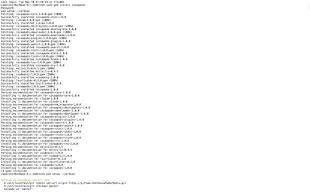 4. Escriba "pod configuración--verbose". Tenga en cuenta que probablemente tendrá unos minutos para completar.