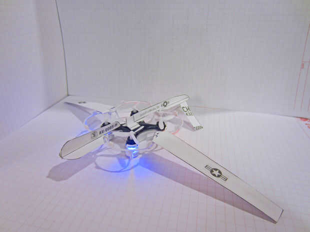 El robot está listo para vigilar los cielos. Este proyecto se puede completar utilizando la cámara con CX - 10C para crear un modelo más realista. Para evitar que el CX - 10C de cámara de ser obstruida la parte inferior la llamarada de la nariz debe eliminarse (mostrado anteriormente).