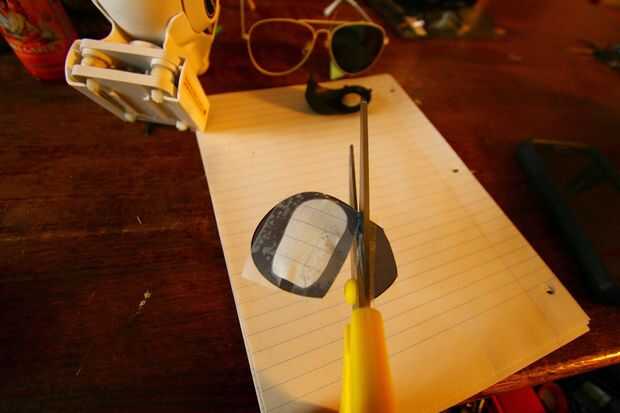 Coloque la plantilla de tour sobre los vidrios y la cinta hacia abajo.