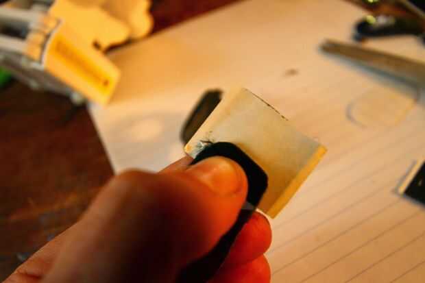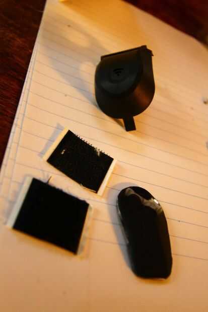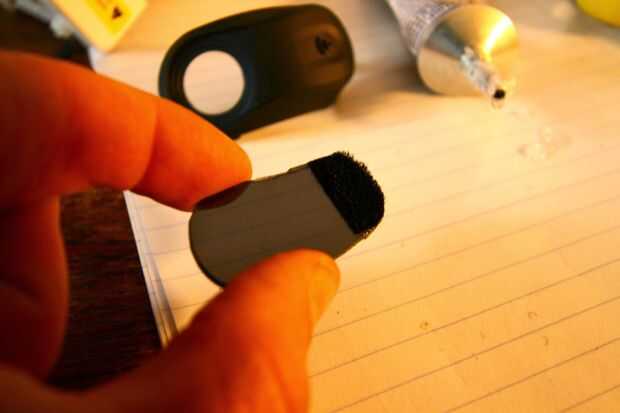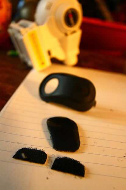 Corte de cinta de gancho y lazo (Velcro) para colocar el filtro.
