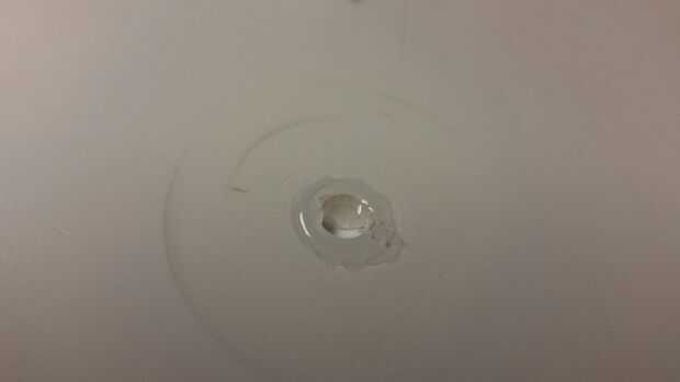 Limpiar exceso de cola con hilos en el centro con una toalla de papel.
