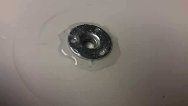 Coloque la tuerca de árbol cortado en el agujero y presione firmemente en el pegamento en el anillo exterior.