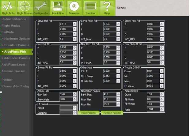 La imagen siguiente muestra los valores específicos del PID para el ala X5 para firmware 2.71