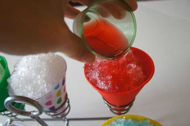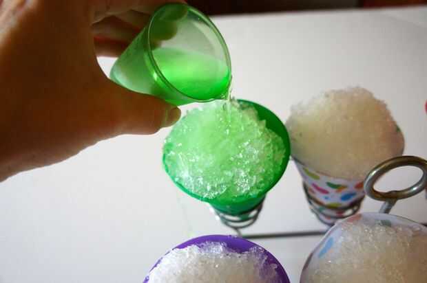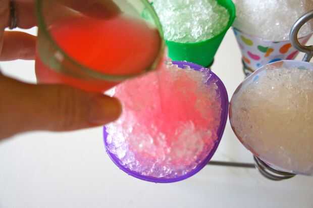 Yo tienda comprar jarabe de cono de nieve, pero usted puede hacer fácilmente su propio haciendo un simple jarabe y añadir sabor a los alimentos para colorear y diferentes extractos. Para una versión picante, podría agregar algunos chiles en el almíbar y escurrirlas antes de añadir el colorante o también podría infundir el alcohol con chiles. Algunas ideas rápidas. Son infinitas las combinaciones de sabor posible.