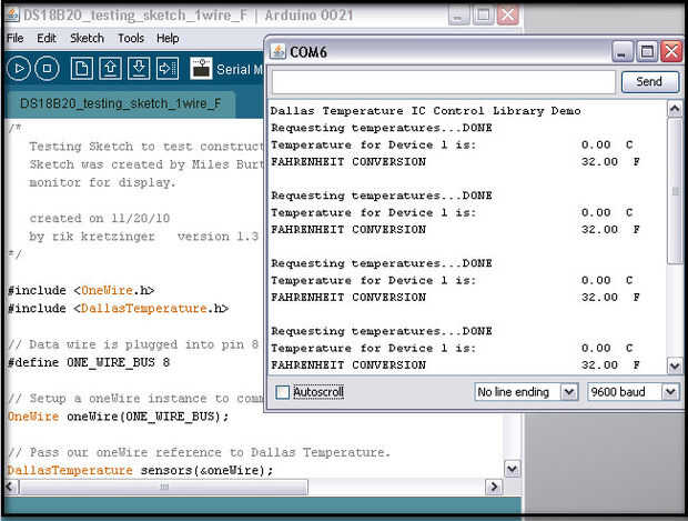 Bosquejo fue creado por Miles Burton y cambiado para mostrar temperaturas C y F, usando el serial