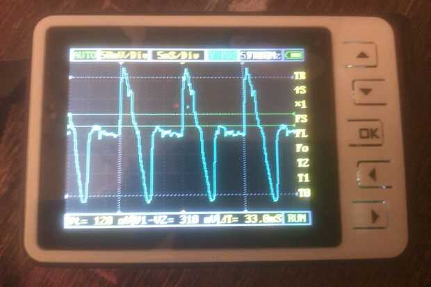 4. ahora debería ver el dispositivo de medición de la señal en la pantalla principal. Puede que necesite ajustar la escala horizontal o vertical para obtener una mejor vista o utilizar la característica de escala automática.