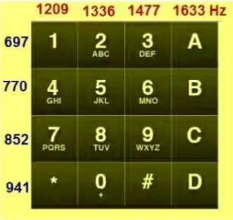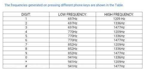 Cuando se pulsa un botón, la fila y la columna tonos son generados por el teléfono o toque instrumento de tono. Estos dos tonos serán distintivos y diferentes de tonos de otras teclas. Así que hay una baja y alta frecuencia asociada a un botón, es que esencialmente la suma de dos ondas se transmite. Este principio elemental puede extenderse a una gama de aplicaciones. Cada fila y columna del teclado corresponde a un cierto tono y crea una frecuencia específica. Cada botón se encuentra en la intersección de los dos tonos.
