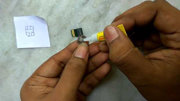 4. Conecte el Nano SIM Chip con la tarjeta MicroSD usando el pegamento dura (feviquick), dirección correcta es necesaria