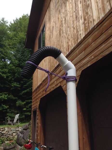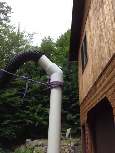 Un cabezal de ducha será necesario para dirigir el agua hacia abajo. Para esto usé una vieja manguera de vacío y alguna cadena. Esto funciona bien para agua directa. Un flujo constante debe salir cuando de la bomba. El uno negativo sobre esto es que tendrá a la bomba mientras que estás allí pero que no es difícil ya que la bomba es muy fácil de usar y requiere muy poco esfuerzo.
