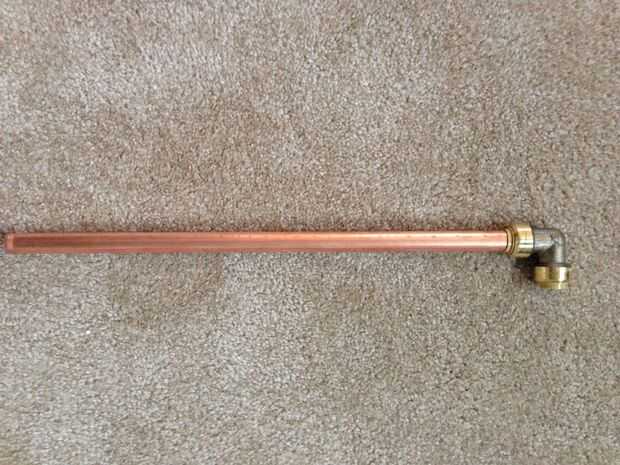 Para dar el tubo un poco pendiente para drenar hacia la pared, quería el tubo vertical a ser un poco más corto. Marqué una segunda línea de 1/8" más cercana al codo de la parte superior. Sin embargo no es mi línea de corte. Usted necesita para tener en cuenta por la cantidad de tubería en la mordedura de tiburón adecuado. Para conexiones de 1/2" es la cantidad de tubería dentro de la conexión 7/8", así que marqué la línea de corte 7/8" por debajo de la segunda marca que hice. Luego cortar con un cortador de tubo y rebabas de la tubería. Se puede utilizar una sierra para metales pero recomiendo fuertemente contra él. "Hackear" siendo la palabra clave descriptiva, no obtendrá un corte recto perpendicular y no funcionará con el ajuste de la mordida de tiburón. Conseguir el cortador de la tubería, es barato y muy fácil de usar limpiador de manera.