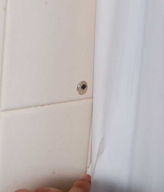 ID dé un par de pulgadas de la parte superior de la cortina de la ducha para dejarlo a la deriva sobre a la pared, después de que cada uno debe estar entre 5"- 12" abajo.