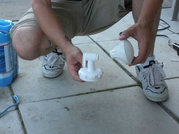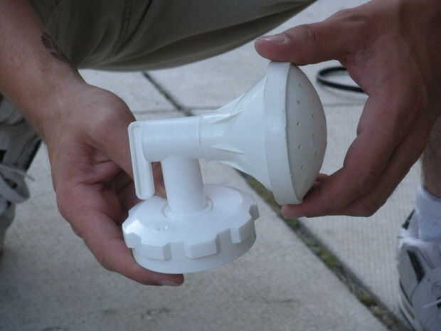 Retire el tubo de la regadera. También puede quitar la boquilla de la jarra de agua. Inserte el extremo del caño jarra agua a la boquilla de la jarra de agua. Asegúrese de que usted tiene relativamente ceñido. Tuve alrededor de 1,3 mm de una brecha cuando había insertado un extremo en el otro, que más tarde.