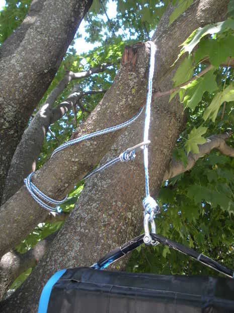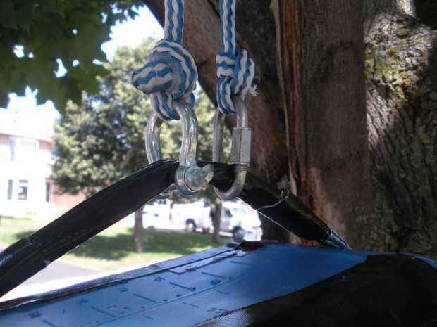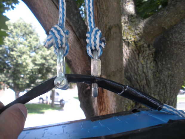 4. Fije la cuerda para el árbol o la jarra. Hay una miríada de formas de hacer esta parte realmente, y aquí yo he demostrado dos. Realmente depende de la altura deseada para así como lo que usted está colgando de. Si quieres explorar diferentes métodos, yo sugeriría utilizando un medio jarro completo por ahora, para salvar su espalda ;)