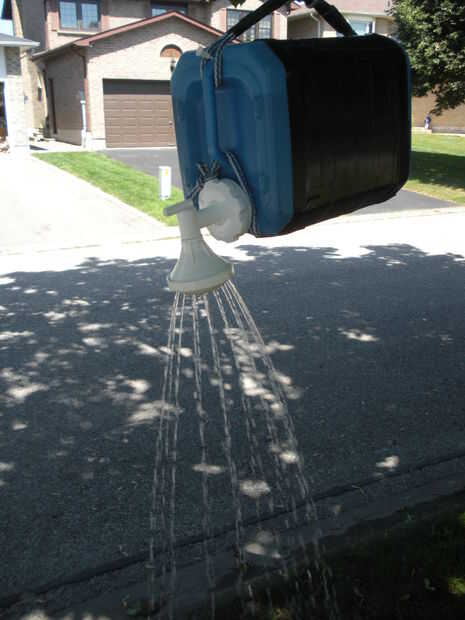 ** también puede alterar la tasa de flujo de agua en donde a lo largo de la cuerda con cinta para colocar el grillete. Creo que dejándolo en la marca 5L (en la parte posterior de la jarra) me sale un flujo simétrico perfecto derecho hasta que es vacío.