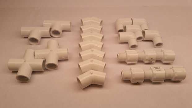 • Diversos accesorios de tubería que se pueden encontrar en tu ferretería local