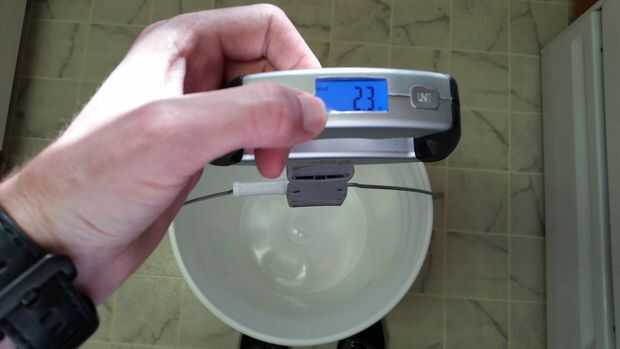 - Peso del agua dentro de cubo - 21.0 (lbs) - 2.3 (lbs) = 18,7 lbs