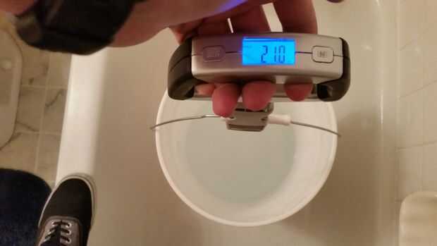 Es muy fácil calcular los galones por minuto (GPM) que es capaz de ser suministrada por la ducha. Quería saber con precisión cuánto podría entregar mi ducha. Usando un cubo y escala, mide el peso del agua más de 30 segundos.