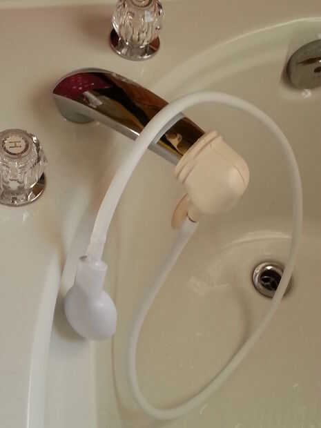 Una ducha de mano excelente camping puede hacerse mediante la adición de un tubo de ventilación a una botella de agua de 2 litros:BTW: yo uso Pert Plus (Champú + acondicionador) para lavar mi cabello y mi cuerpo entero. Esto es porque aclara apagado