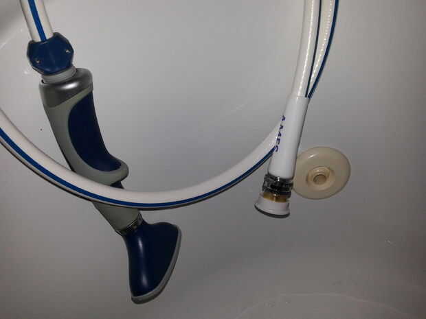 4) Conecte la manguera al adaptador de complemento femenino y apriete firmemente.