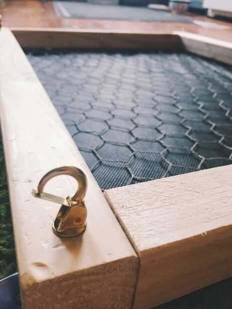 Añadir sus ganchos a las esquinas de su jardinera. Nuestros ganchos tenían las abrazaderas, que hizo más fácil colgar. Luego atornille sus 4 ganchos de techo regular el techo, después de haber medido la distancia adecuada.