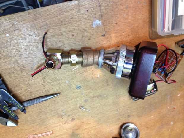 Todo se suelda a la perfboard incluyendo el interruptor en miniatura. La batería se une con Velcro.