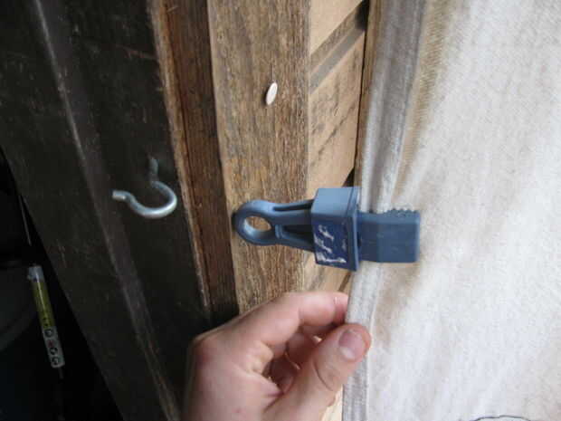 Yo uso los clips azul que se ve en la foto para garantizar la cortina a la casa si es un poco demasiado viento fuera. Normalmente no tiene que preocuparse por esto.