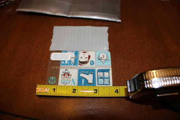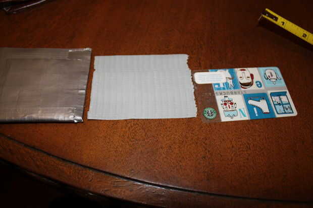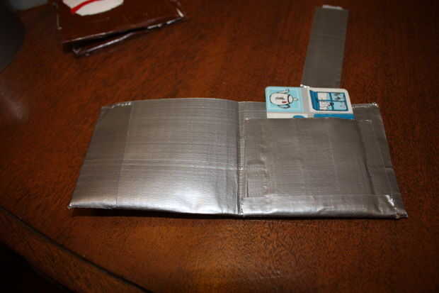 Finalmente el último paso antes de que termines es añadir los bolsillos dos tarjetas. Este paso tiene un montón de conjeturar sobre las medidas por lo que voy a hacer un resumen. Para crear un bolsillo de tarjeta que usted debe tomar dos tiras de cinta que son lo suficientemente grandes como para cubrir su tarjeta pero pequeño bastante para caber en la cartera. Como antes doble debe capa el lado pegajoso de la cinta a lado pegajoso para que no se pegue a su tarjeta. Para ello tome su tarjeta y medir una tira de cinta lo suficientemente grande como para cubrir su tarjeta en anchura. Normalmente cuando hago esto tomo una tira normal de cinta y aplique cinta de desecho hasta que se ajusta a lo que necesito. Una vez que tengas esto puede colocarlo en el interior de la cartera. Dependiendo de si usted tarjeta de bolsillo se carga desde el lado o desde la parte superior que tienes que volver atrás y el extremo opuesto del cierre bolsillo de la cinta. Como usted puede sobre medida para que usted puede recortar hasta más tarde. Porque se trata de su cartera puede Agregar tantas bolsas como quieras. Personalmente he apilados tres bolsillos uno encima del otro y tenía una tapa un bolsillo delante de una moneda de la bolsa. Incluso he hecho una cartera antes de se compone de dos carpetas en uno que dobla juntas en una pequeña plazoleta.