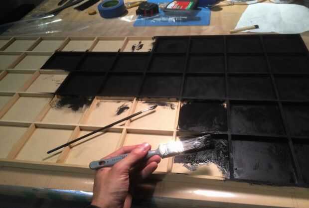 Ahora que ya tenemos un cuadro de la cuadrícula de 10 x 5, vamos a pintar negro. O bien puede hacerlo con un cepillo y alguna pintura de pared exterior, o puede intentar usar pintura en aerosol. La clave, sin embargo, es para asegurarse de que no hay ningún exceso de pintura, ya que esto hará que los azulejos no se adaptan bien.