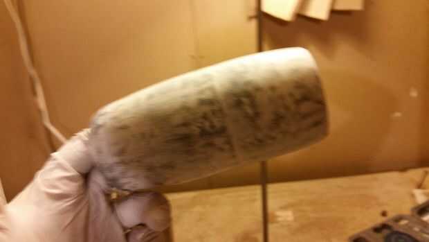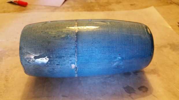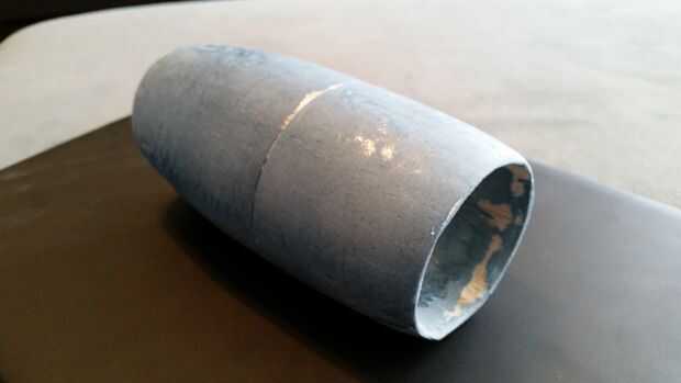 Necesitaba el diámetro interior para que coincida con la Sábana Santa (cilindro) lo más cerca posible, y 2" sierra circular resulta para ser casi exactamente el 52mm que necesitaba para encajar en. Puesto que el extremo de la carcasa cónica hasta menos de 2" y no quería destruir la forma usando el mismo agujero de tamaño la manera entera a través, cortar la carcasa por la mitad. Pongo el 2" agujero por la parte delantera donde el ventilador debía montarse y un agujero más pequeño del 1 1/2" a través de la espalda,-lijado a mano los de forma cónica en el centro. Como estaba perforación a través de la balsa la abrazadera por resorte que utilizaba para sostener en lugar realmente dividió la carcasa entonces hueco 2 half pipe buscando piezas, que el taladro de prensa enviaron volando. Sin embargo, un poco de pegamento hizo las piezas pegan muy bien atrás.