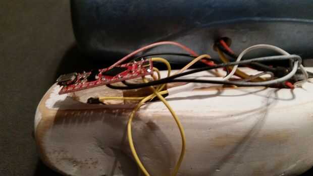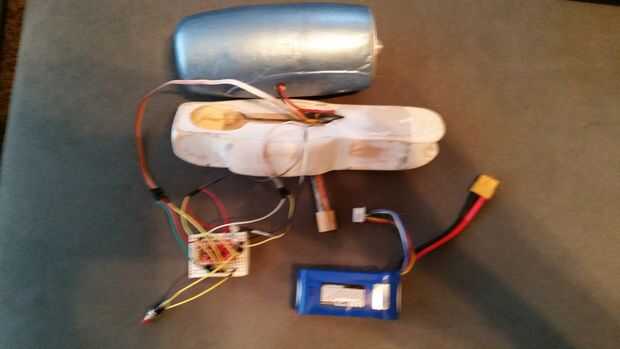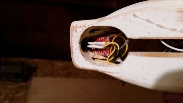 Para permitir la modificación del código arduino después de ser construido, perforé un agujero adicional para permitir el acceso al puerto micro USB. Después de soldar en el telémetro, LED, ESC y las conexiones del botón, deslice todas las piezas en su lugar. Yo entonces madera puttied encima y arena abajo, igual que la ESC en el frente.