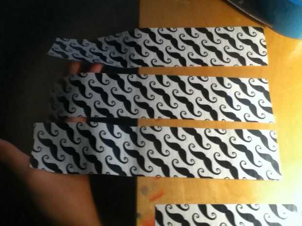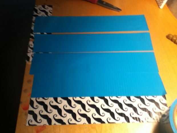 Mida el tamaño que desee su billetera cuando está abierto. (El mío es sobre 8inches). Coloque sobre su superficie plana DOWN(lol) de cara para que tengas algo para medir las otras piezas con. Corte tres más del mismo color. Si desea que el interior de su billetera a un color diferente, cortar cuatro piezas (del mismo tamaño) de ese color.