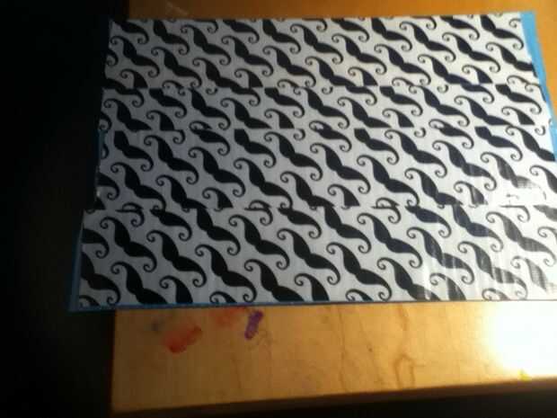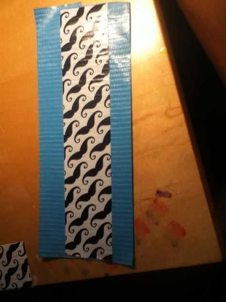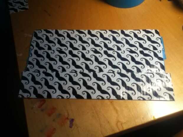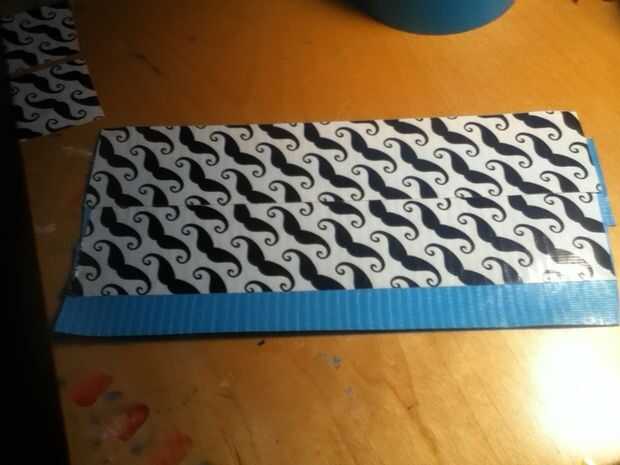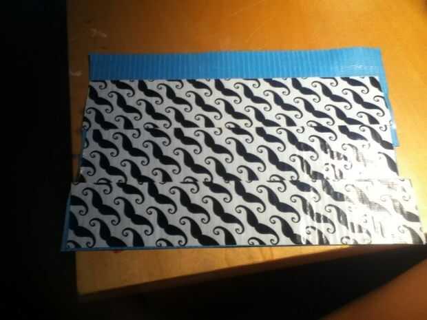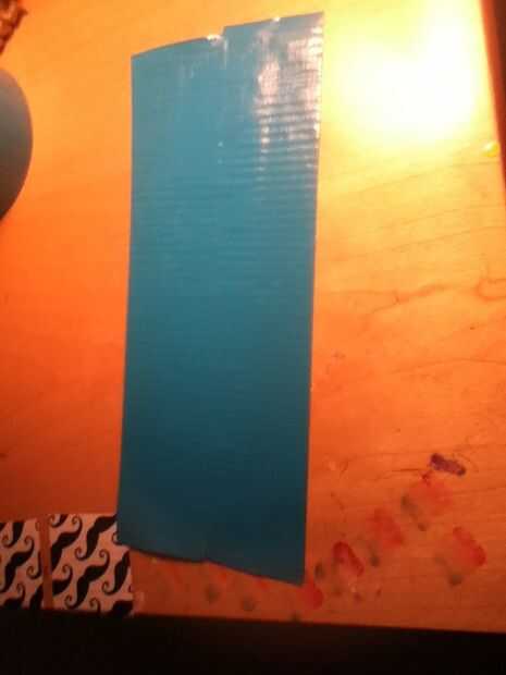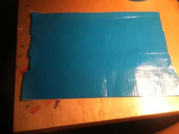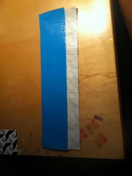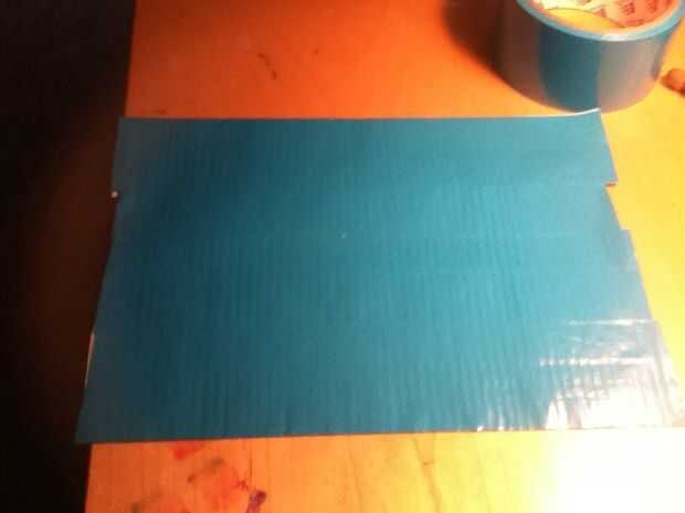 Lay 1 cara de color hacia arriba y coloque color 2 a mitad de camino en superior alineando los bordes. Coloque otro color 2 en la otra mitad. Voltear y repetir con el color 1. Continuar repitiendo hasta que no haya 2 color 2 y 1 color 1. Luego coloque el color 2 en todo el camino en un extremo y la mitad en el otro extremo. La última pieza debe ser de color 1. Lugar totalmente en el lado pegajoso pasado de color 2. Si bien hecho debe tener una hoja entera de la cinta del conducto.