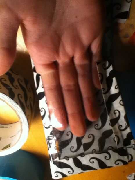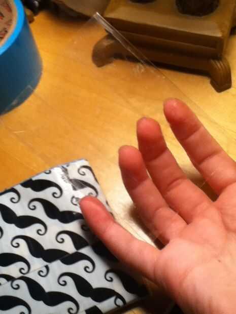 Tomar alguna medida de cinta de embalaje más 4 piezas la mitad de la cartera. Cinta de tres de sus lados hacia el otro lado de la cartera.