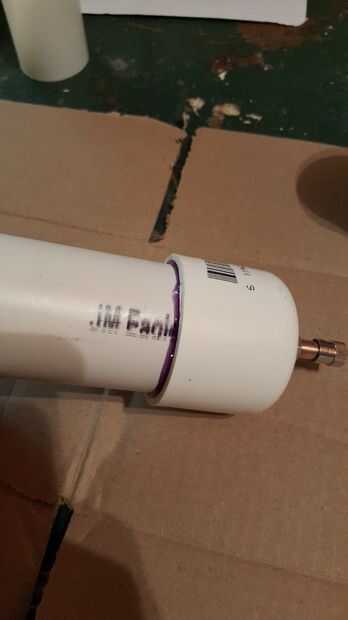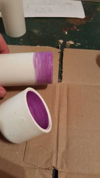 El primer púrpura y cemento de PVC pueden conseguir desordenados. Sugiero poner un trozo de cartón debajo para fácil limpieza.