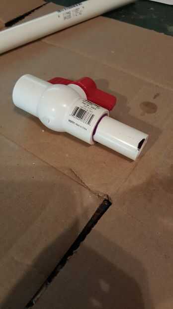 2. Utilizando púrpura imprimador y cemento de PVC Ate el pedazo de 13 pulgadas de PVC a la válvula.