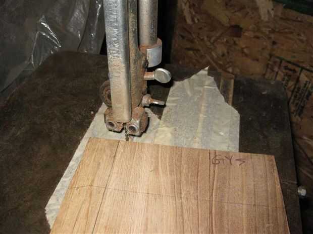 Tengo suerte de contar con una sierra de banda de energía. Con la Sierra de cinta, corte la base. Uso de archivos, luego papel de lija suavizar los bordes de la madera cortada fresca - para evitar las astillas.