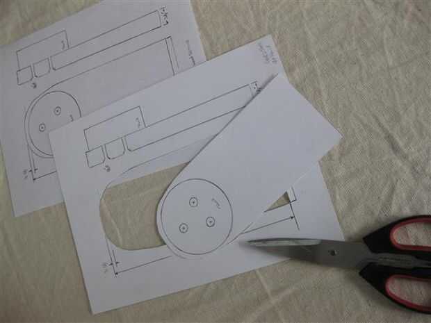 hice una copia de mi diseño de boceto en cartulina de 110 libras para hacer un patrón de plantilla. Corte el patrón de plantilla con tijeras del hogar estándar. Utilizando un lápiz estándar, trazado alrededor del plantilla/patrón en mi pieza de madera.