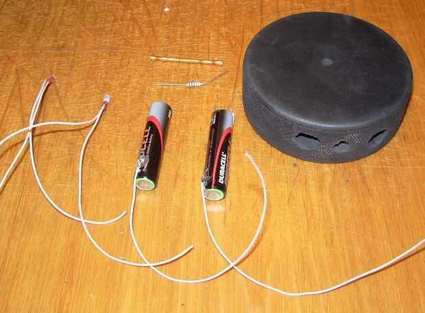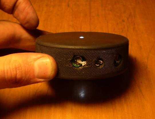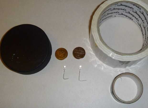 Puede cinta fotorresistencias a cada lado del disco para hacerlo brillar y ser bien visible en la noche en el hielo.